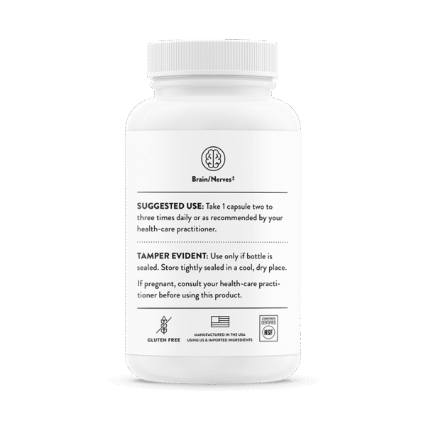 Thorne’s Acetyl-L-Carnitine supports the health of the nerves in the upper and lower limbs and enhances the production of the neurotransmitter acetylcholine, which supports brain function.* Acetyl-L-carnitine also helps minimize the discomfort due to alterations in nerve function; for example, in cancer patients undergoing chemotherapy or individuals with high blood sugar.* Acetyl-L-carnitine is better absorbed and crosses the blood-brain barrier more rapidly than L-carnitine.* Studies have demonstrated its effectiveness in supporting cognitive health and maintaining a positive mood in the elderly, possibly by partially inhibiting the activity of the hypothalamic-pituitary-adrenal axis and lowering chronically elevated cortisol levels, which become elevated during stress.* In addition to acetyl-L-carnitine’s support of brain and nerve health, it also promotes healthy sperm count and motility.*