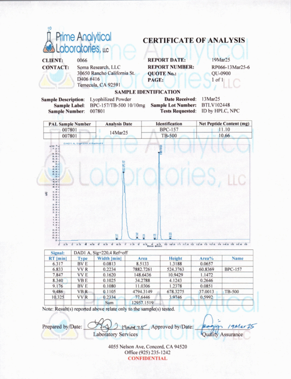 This product combines the unique abilities of both BPC-157 and TB-500 into a blend.
