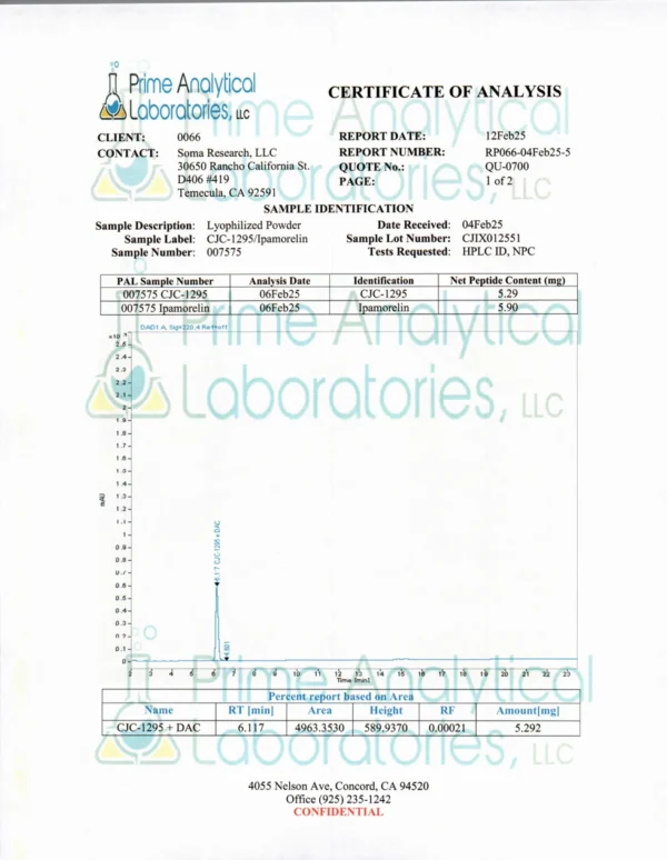 CJC-1295 (No DAC) / Ipamorelin is the combination of two compounds, CJC-1295 and Ipamorelin. CJC-1295 is a Growth Hormone Releasing Hormone (GHRH) analog that acts on the pituitary, while Ipamorelin is a selective Growth Hormone Secretagogue that also acts on the pituitary. These two combinations act together to increase Human Growth Hormone by acting on two different families of receptors.