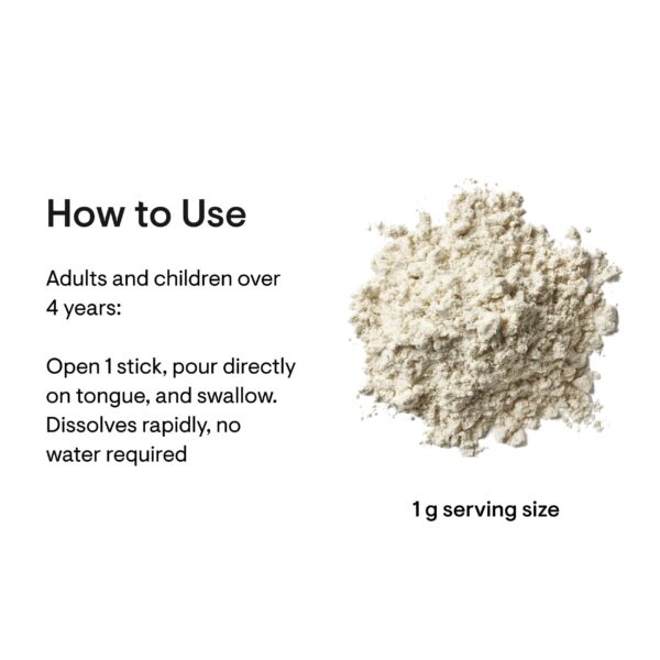 Adults and children over 4 years: Open 1 stick daily, pour directly on tongue, and swallow. Dissolves rapidly, no water required.
