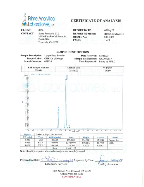 GHK-Cu (Glycyl-L-Histidyl-L-Lysine-Copper) is a naturally occurring copper peptide found in the human body. It is composed of three amino acids bound to a copper ion and is known for its regenerative properties. GHK-Cu plays a significant role in wound healing, tissue repair, reducing inflammation, and reversing signs of aging. Growing in popularity is the