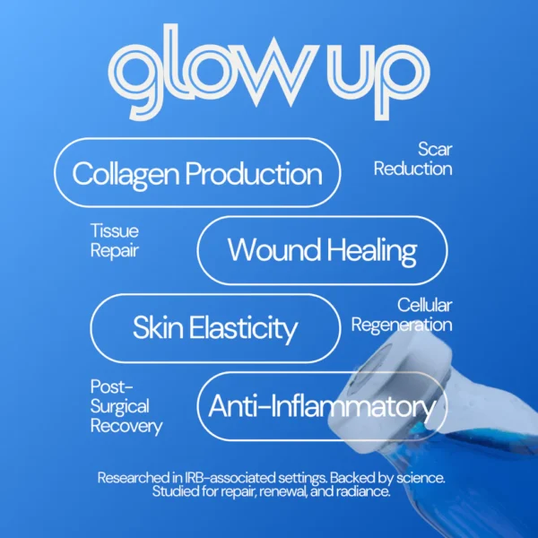 Glow Blend — a research peptide formula featuring BPC-157, TB-500, and GHK-Cu. This combination is commonly studied for its potential roles in tissue biology and cosmetic science.
