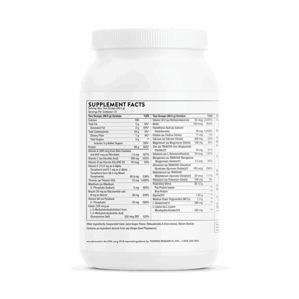 Thorne’s MediClear-SGS is a powerhouse of daily nutrition – combining two plant-based proteins fortified with a complete multi-vitamin/multi-mineral complex, antioxidants, broccoli seed extract, and liver-supportive botanicals – to balance living in a toxic world.