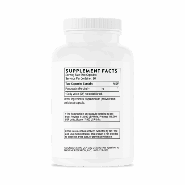 Pancreatic enzymes are essential for digestion and absorption of nutrients after they leave the stomach and arrive in the small intestine.* This important step assures that the nutrients we take in are delivered to our body.* Supplementing with Thorne’s Pancreatic Enzymes supports this natural process for individuals who need a little extra help.* A decrease in enzyme secretion from the pancreas can occur as a normal part of aging.