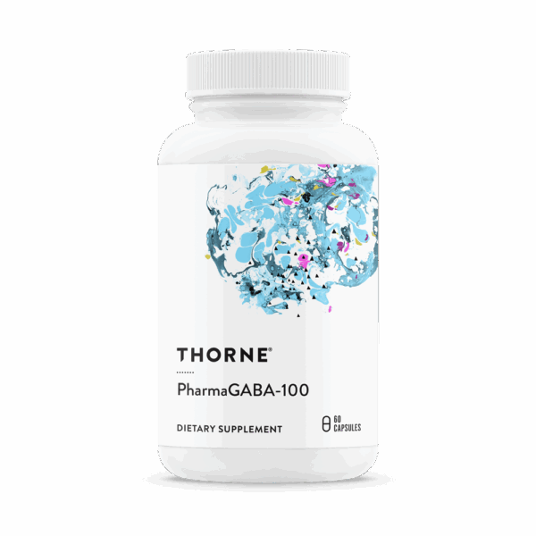 Gamma-aminobutyric acid (GABA) is a major calming brain chemical or neurotransmitter.* Clinical studies show that the natural form of GABA that is in Thorne’s PharmaGABA can decrease the brain’s stress-related beta waves and increase the production of its alpha-waves, creating a profound sense of physical relaxation while maintaining mental focus.* Other studies have shown reduced pupil diameter, heart rate, and two natural biomarkers of stress – salivary cortisol and chromogranin A – all signs of relaxation.* In addition, studies also indicate GABA can enhance sleep.* In a head-to-head, double-blind trial of natural PharmaGABA versus synthetic GABA, the synthetic GABA did not demonstrate these positive effects.* PharmaGABA-250 offers 250 mg of natural GABA per capsule, while PharmaGABA-100 offers 100 mg per capsule. Both are non-habit forming.