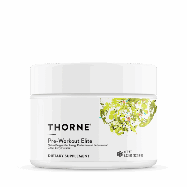 Thorne’s Pre-Workout Elite is designed to provide a clean and natural option to optimize performance during training and competition.* The ingredients in Pre-Workout Elite provide a boost to physical and mental energy production you can feel, without unpleasant side effects often associated with other pre-workout supplements.*