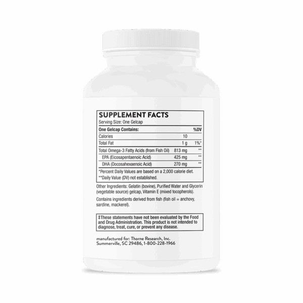 Thorne’s Super EPA provides the highest quality, purest fish oil available from sustainably-sourced, cold-water fish. Super EPA contains two vital omega-3 fatty acids – EPA and DHA – important throughout adulthood, as well as during periods of increased brain growth that characterize prenatal and postnatal development.*