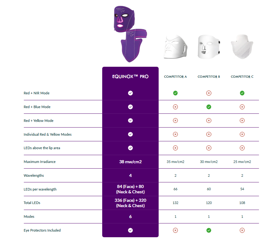 The Equinox™ Pro utilizes 4 research-backed wavelengths that dermatologists trust – each one proven to help your skin in different ways.